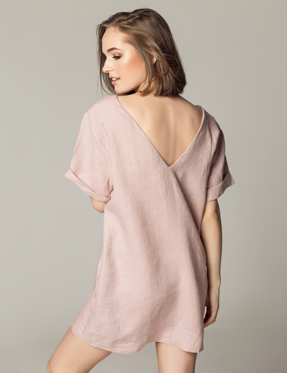 Lniana koszula to połączenie zmysłowej, romantycznej piżamki i sportowego stylu. Luźny krój zapewnia komfort podczas snu, natomiast wycięcie w kształcie litery V na plecach i dekolcie zdecydowanie dodaje uroku temu projektowi. Koszula jest tak urocza, że śmiało można wykorzystać ją jako sukienkę lub oversizowy t-shirt. Dostępna w trzech kolorach.