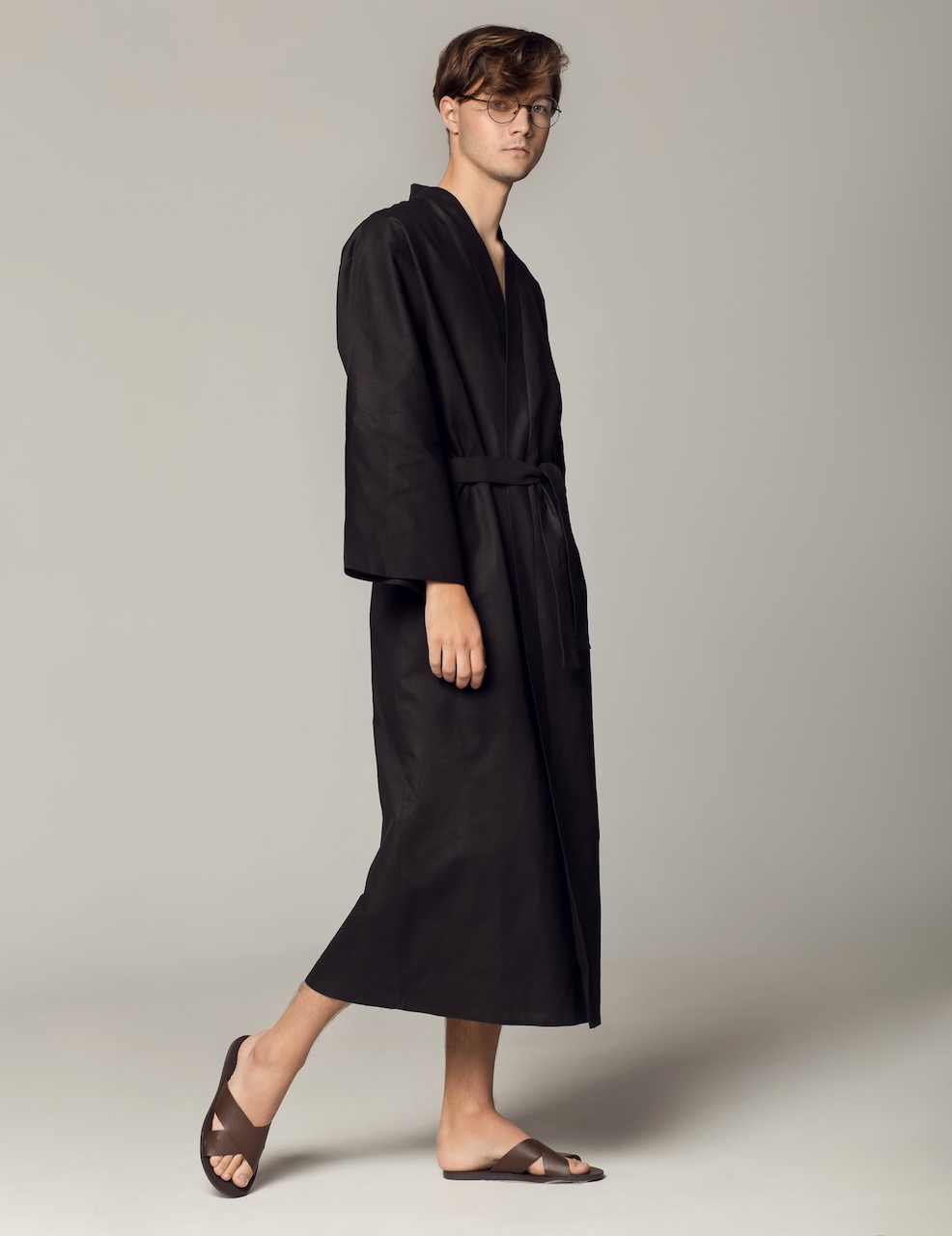 Nie tylko świąteczne piżamy! Kolejnym pomysłem jest lniany szlafrok, który sprawi, że zimowe, chłodne wieczory staną się o wiele cieplejsze. Len to tkanina, która często kojarzy się z letnimi stylizacjami. Nic bardziej mylnego. Ogromną zaletą lnu jest utrzymywanie odpowiedniej temperatury ciała. Dlatego zarówno latem, jak i zimą lniana tkanina przyczyni się do komfortu naszej skóry. Lniany szlafrok będzie idealnym towarzyszem po wyjściu z gorącej kąpieli, a także podczas relaksu przy kominku z kubkiem kakao. Dostępny w trzech kolorach oraz wersji krótkiej i długiej.